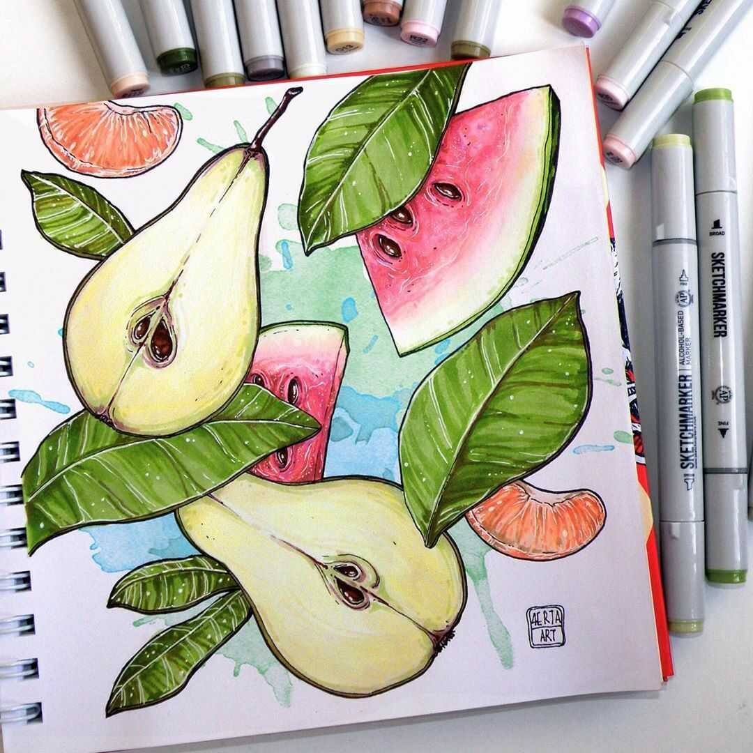 ![Фрукты скетч маркерами]()