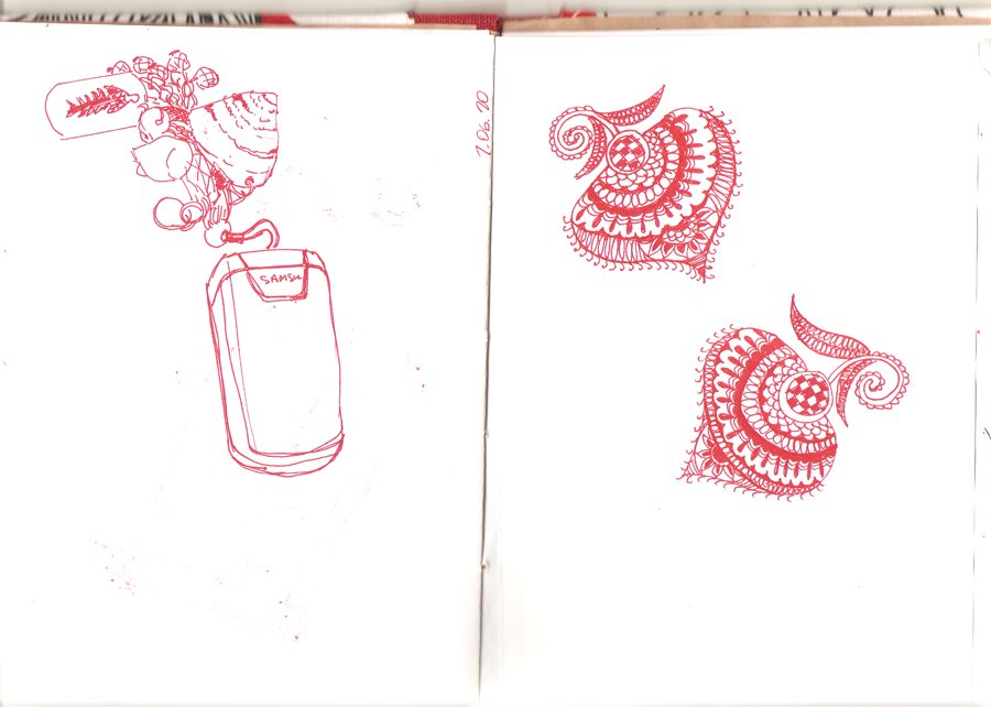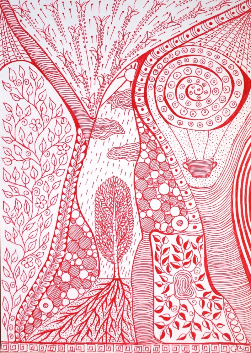 Рисунки чёрной и красной ручкой