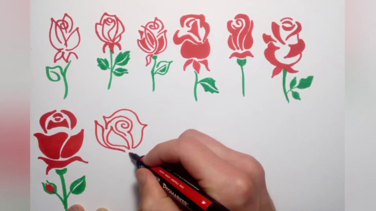 Нарисовать розу фломастером