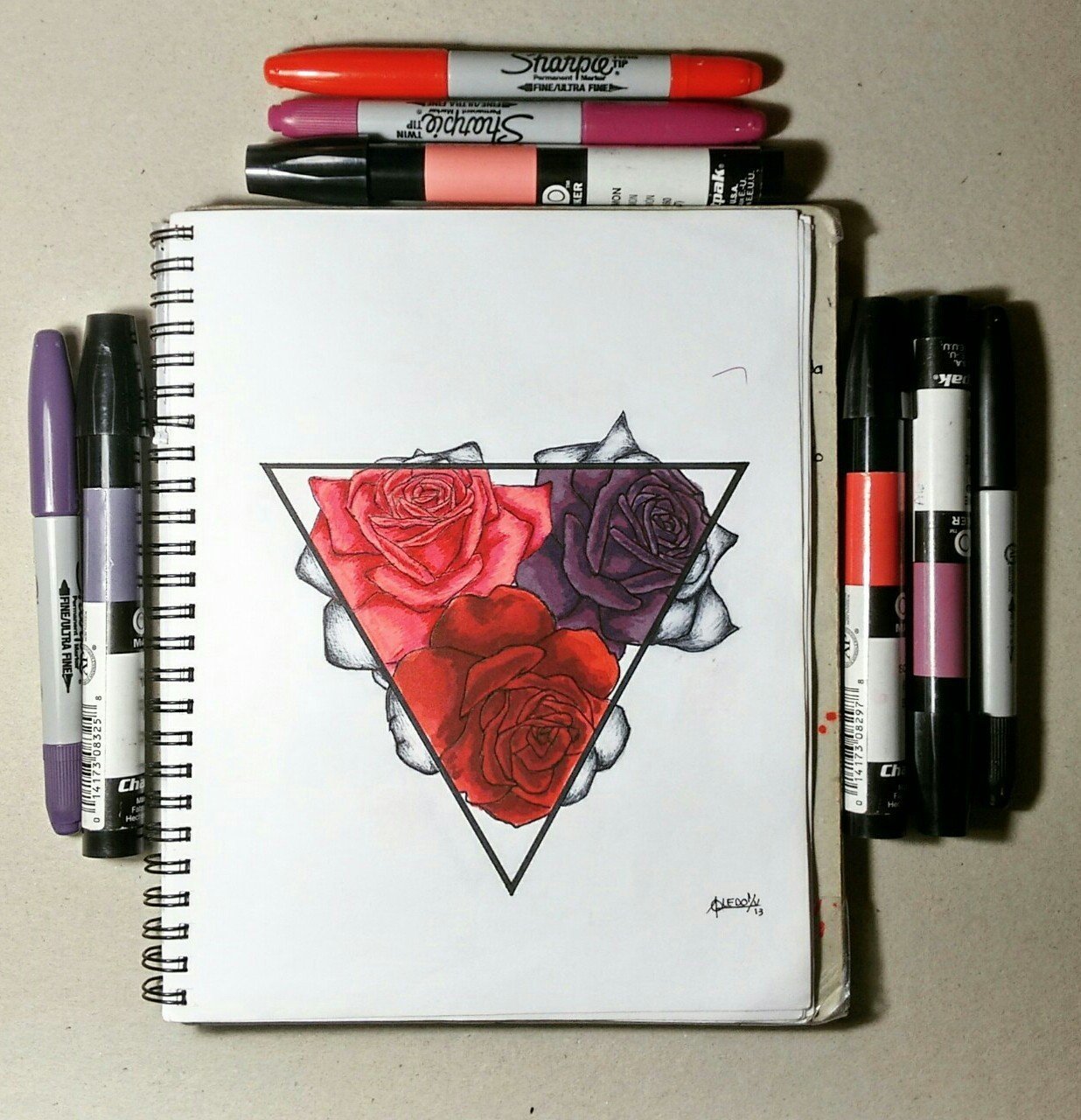 ![Роза маркерами]()