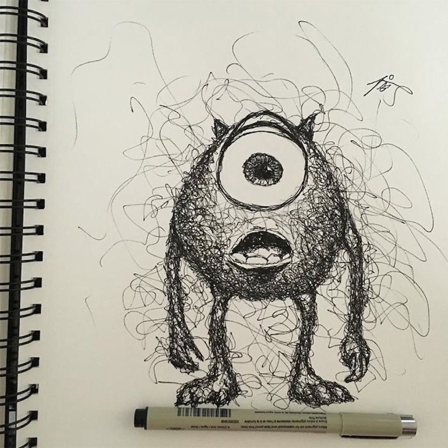 ![Рисунки чёрной ручкой]()