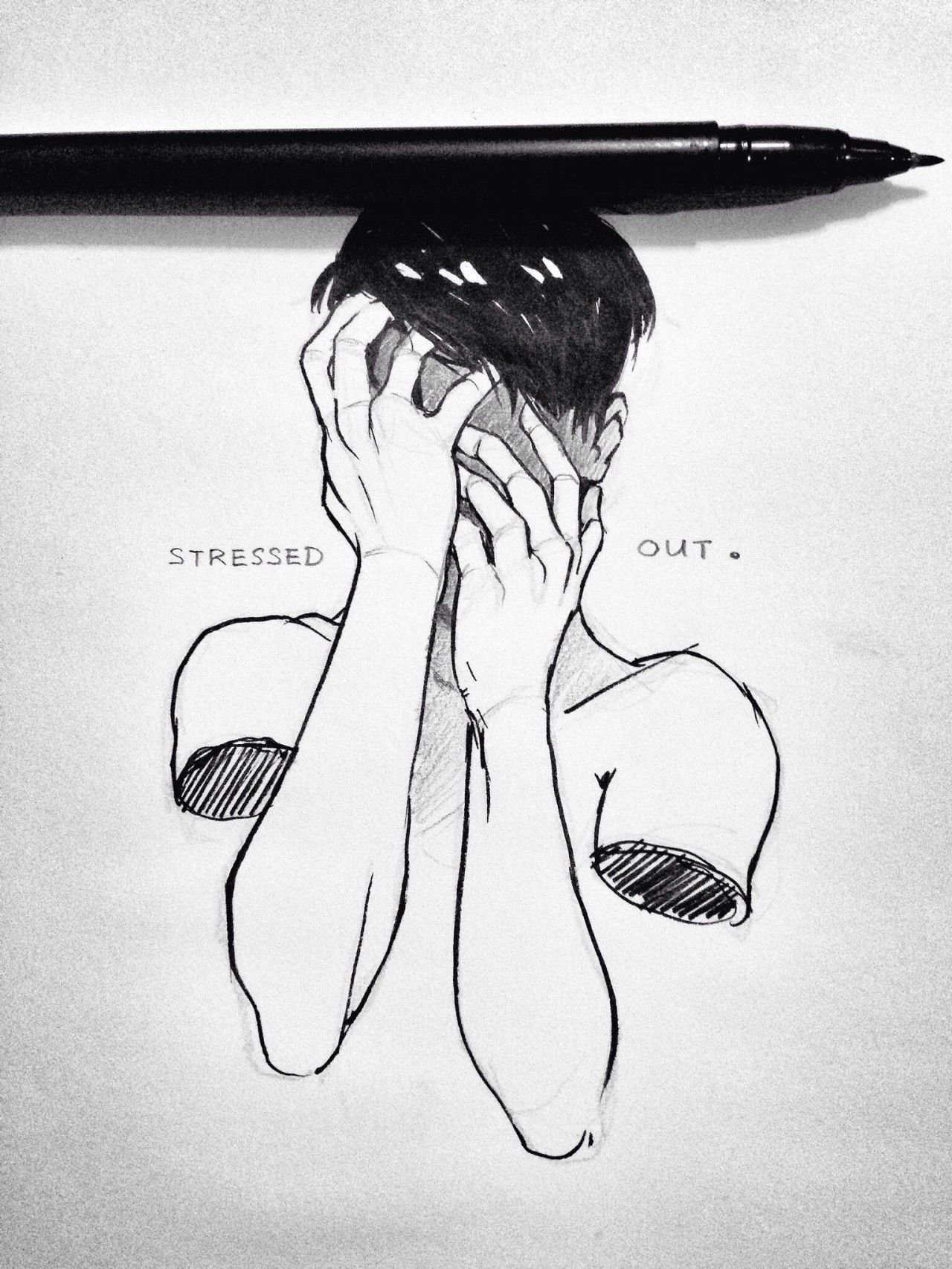 Грустные рисунки для срисовки черной ручкой