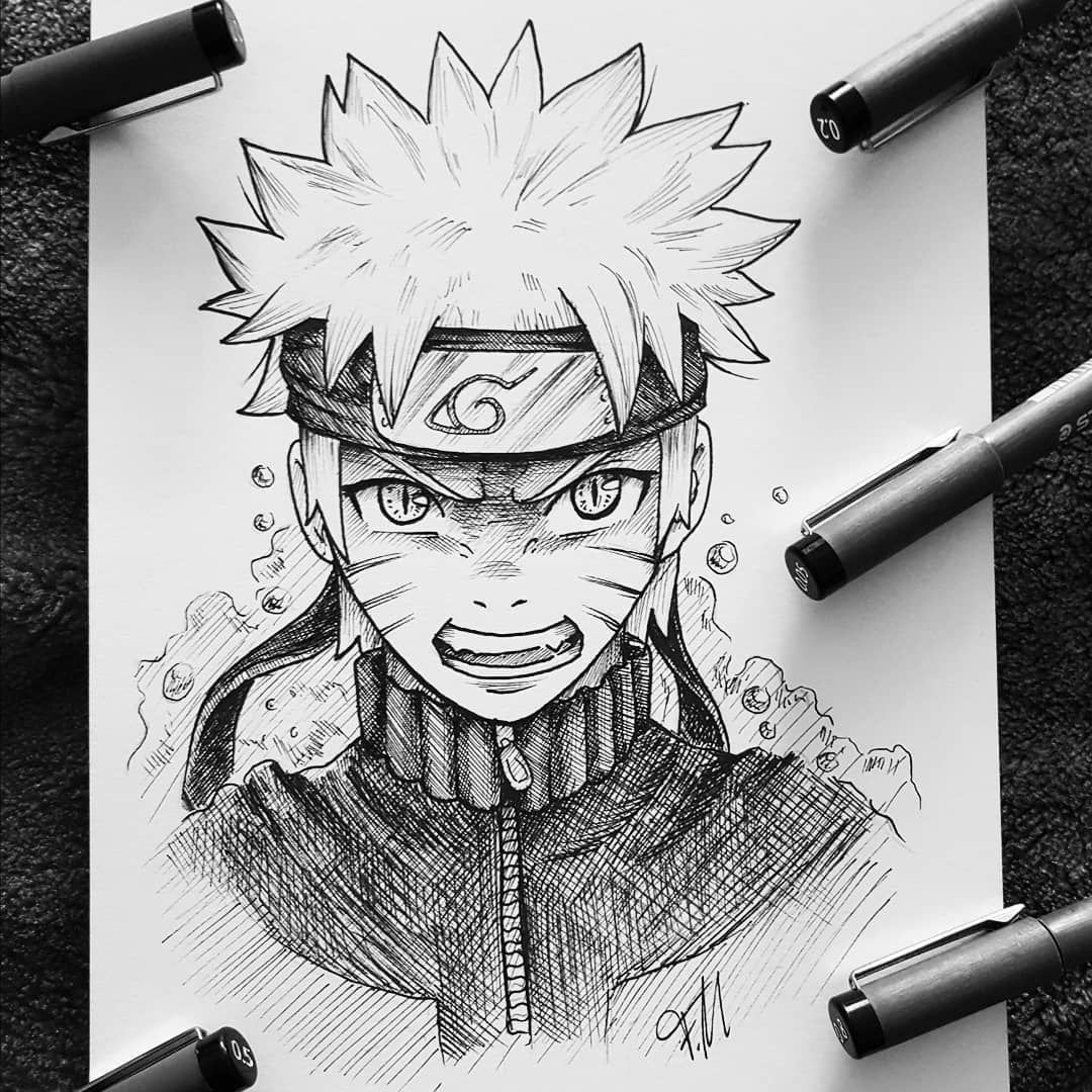 Наруто рисунок гелевой ручкой
