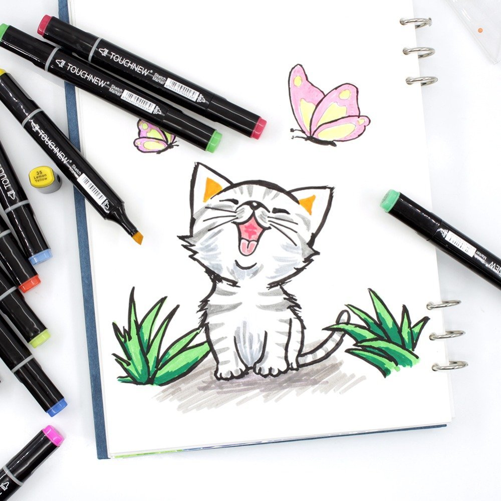 Котенок скетч маркерами