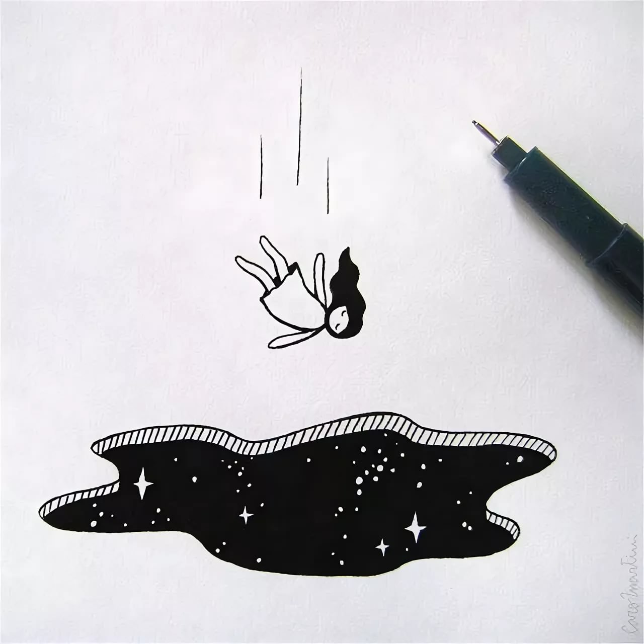 ![Рисунки чёрной ручкой]()
