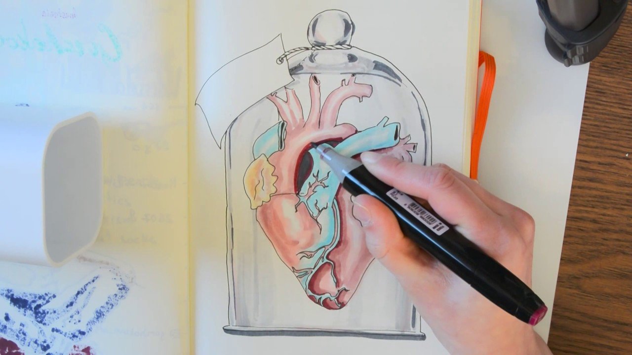 ![Сердце скетчинг маркерами]()