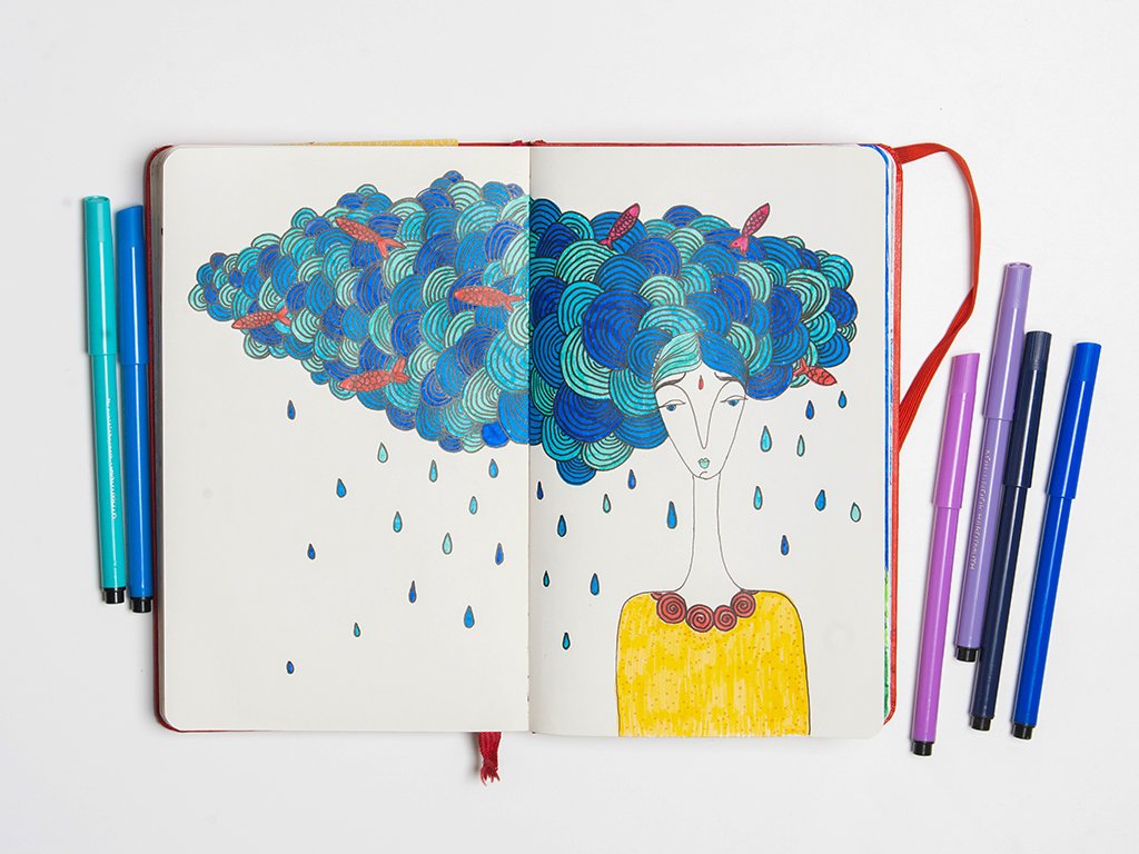 ![Рисунки фломастерами в блокнотике]()