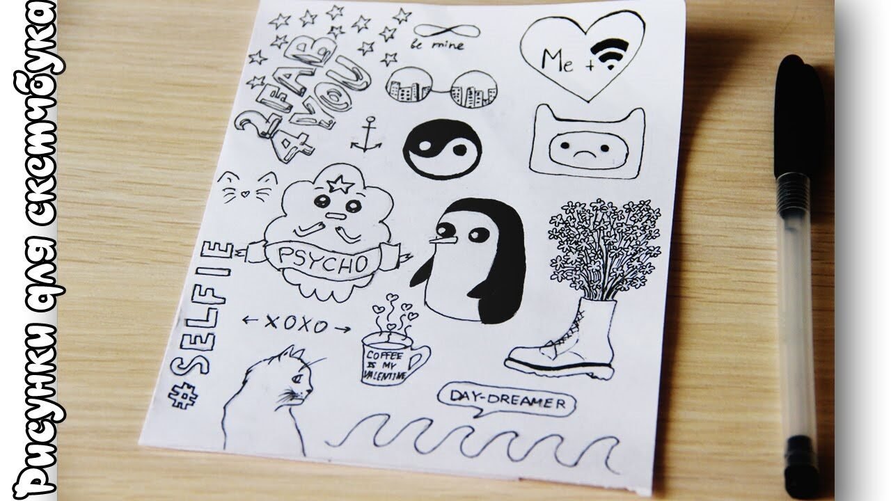 ![Рисунки для скетчбука черной ручкой]()