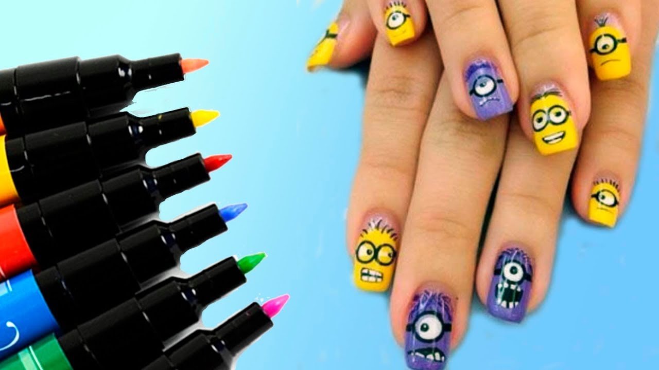 ![Ногти из фломастеров детям]()