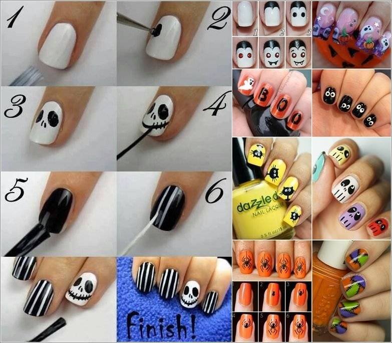 ![Лёгкий маникюр для начинающих на Хэллоуин]()