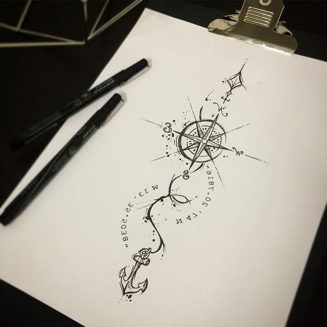 ![Эскизы тату компас на руку для мужчин]()