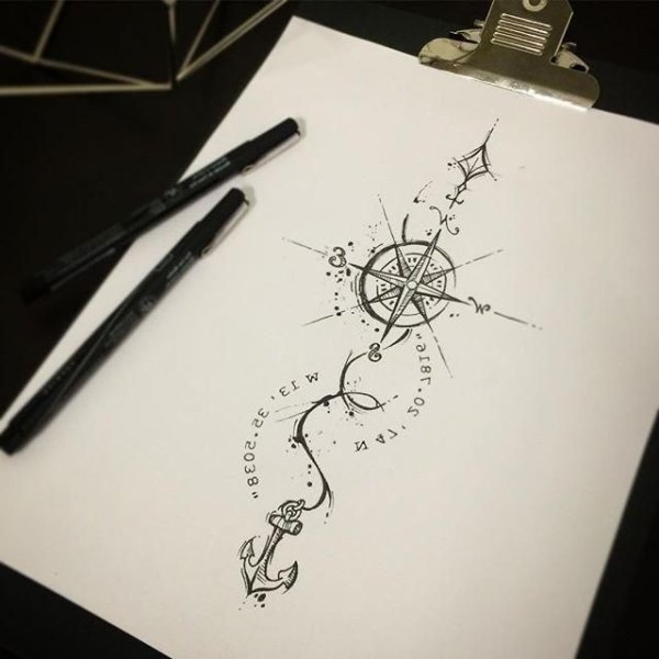 Эскизы тату компас на руку для мужчин