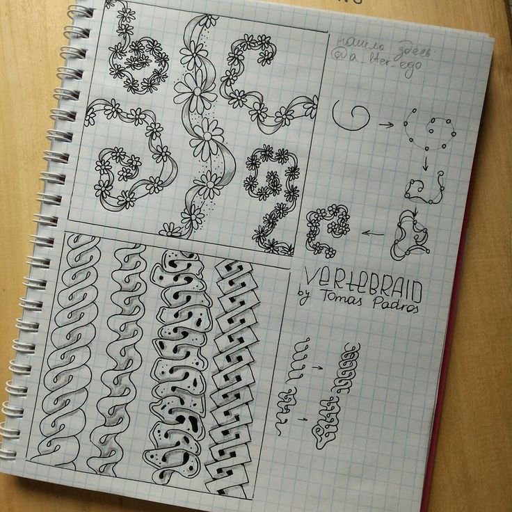 ![Красивые узоры ручкой в тетради]()