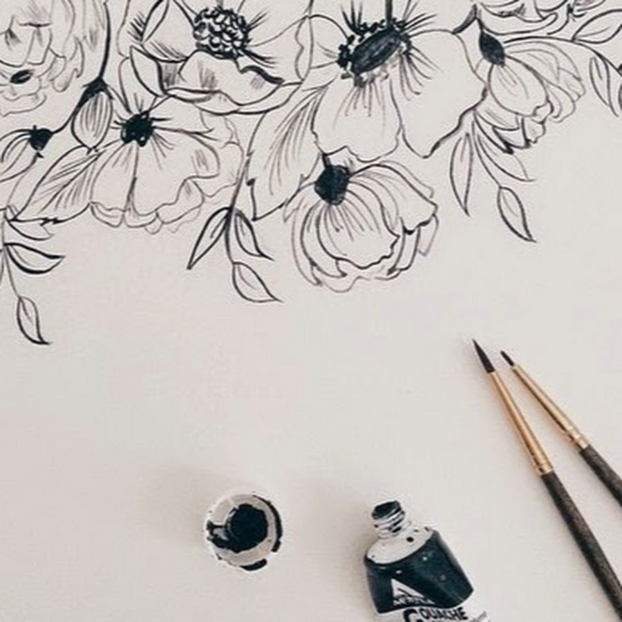 ![Цветы черной ручкой]()