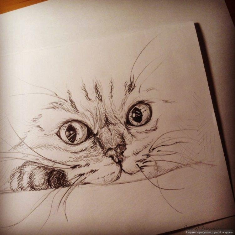 Красивые рисунки ручкой кот