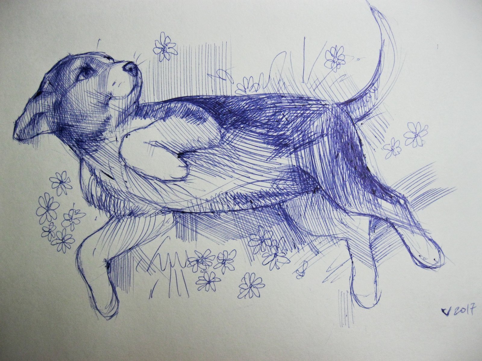 Собака черной ручкой