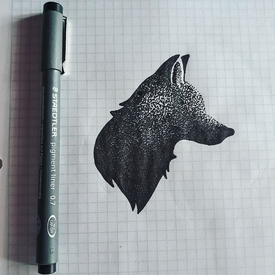 Волк черной ручкой