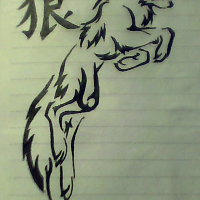 ![Тату ручкой волк]()
