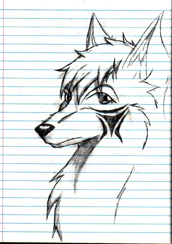![Волк на бумаге карандашом]()