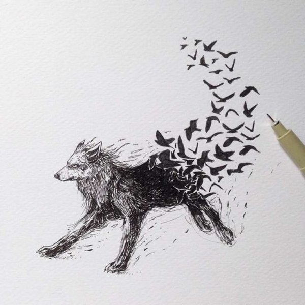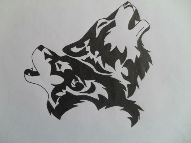 ![Волк черной ручкой]()