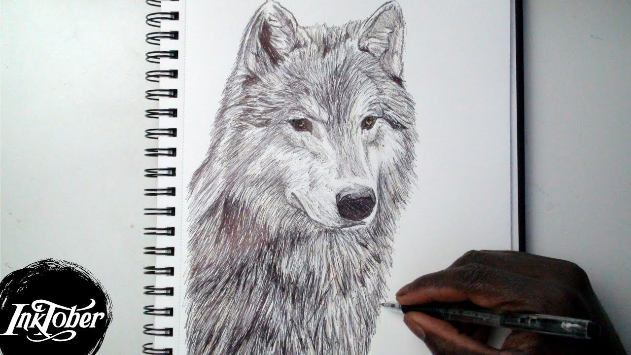 Нарисовать волка ручкой