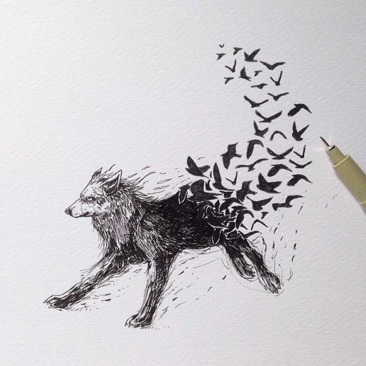 ![Волк рисунок ручкой]()