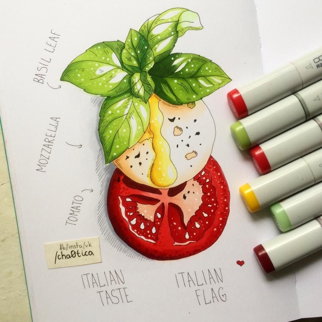 Рисование маркерами еда