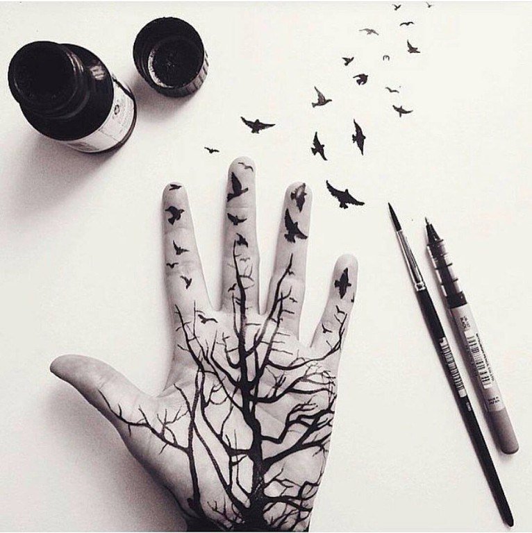 ![Рисунки на руке черной ручкой]()