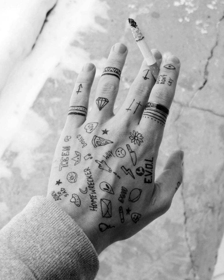 Тату на кисти ручкой