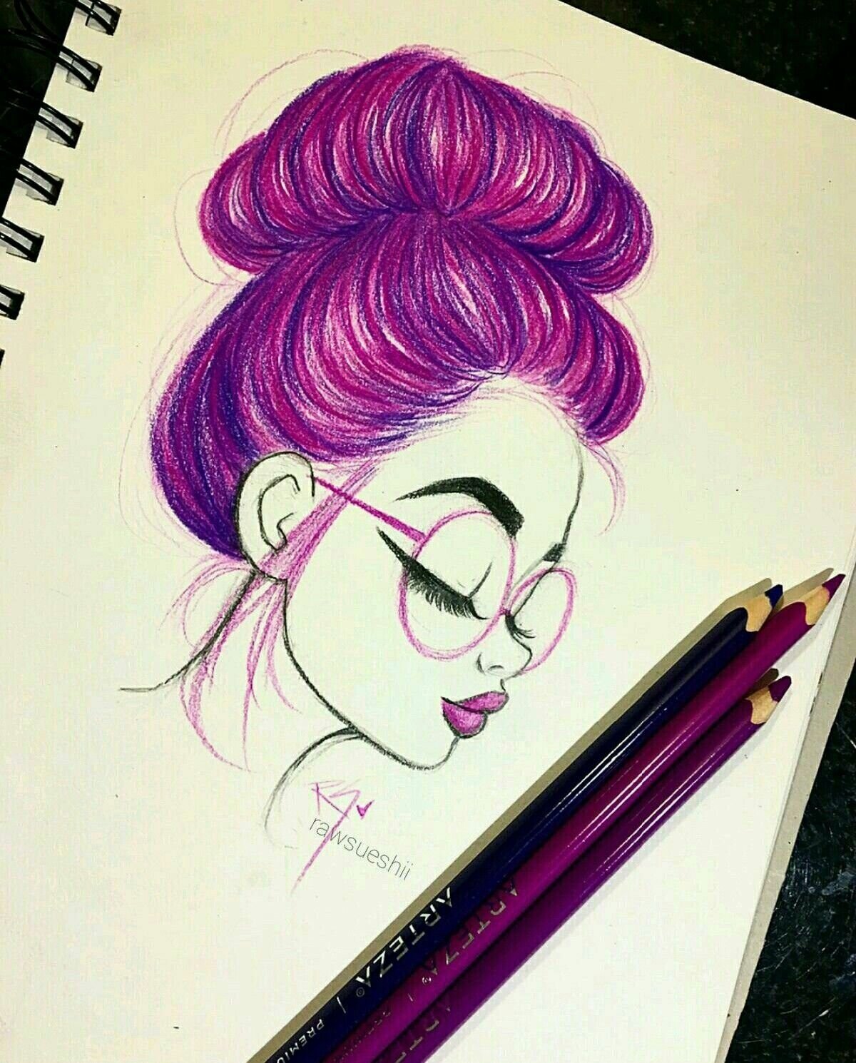 ![Девушка в очках рисунок карандашом]()