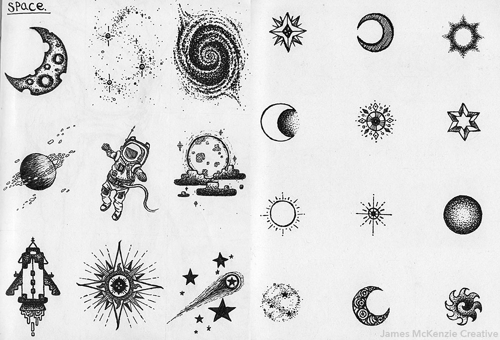 Эскизы тату на листе бумаги