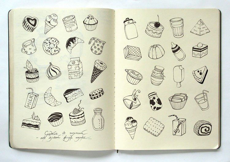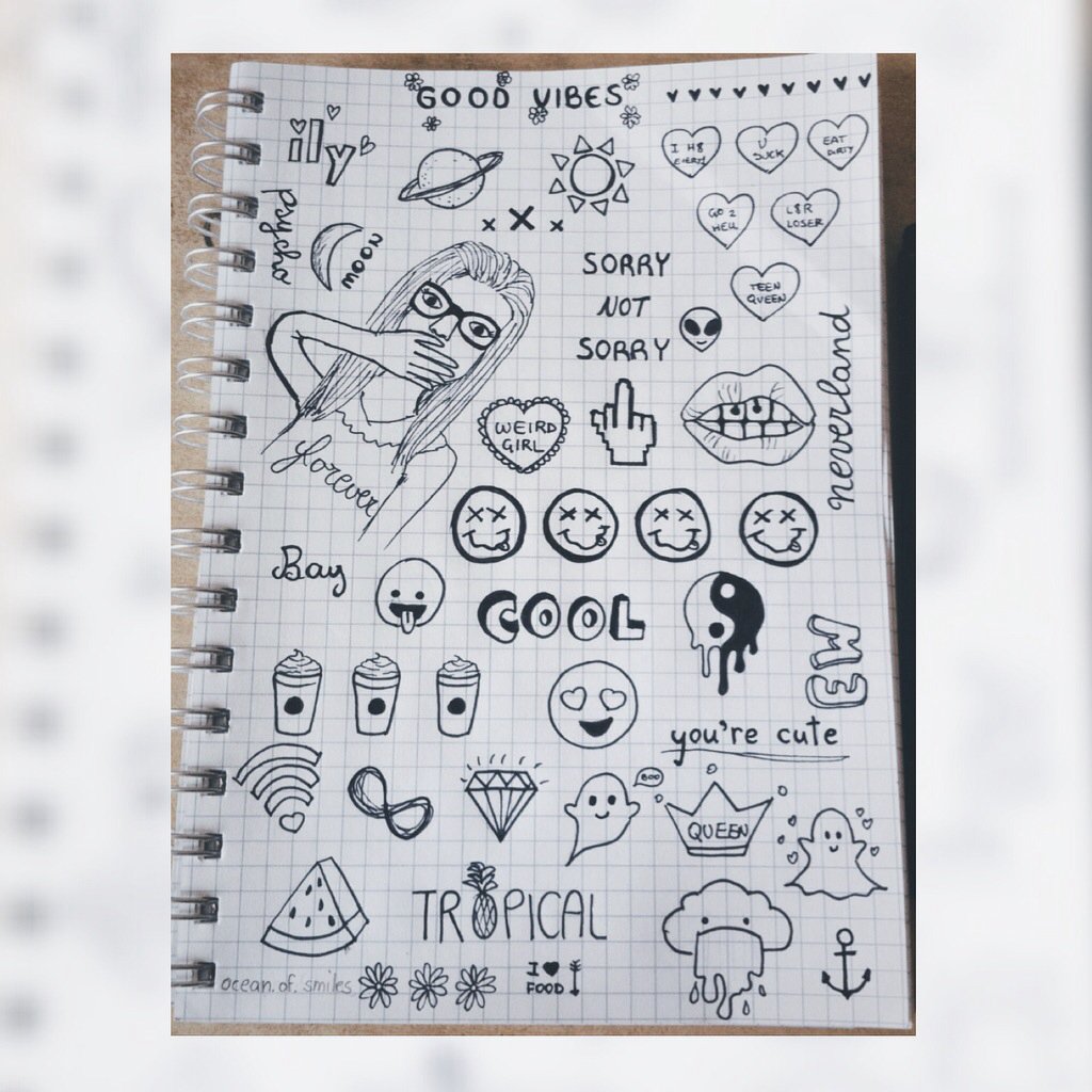 ![Идеи для рисунков в блокноте]()