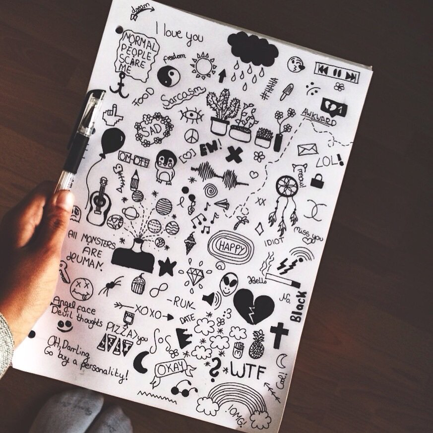 ![Рисунки для скетчбука черной ручкой]()