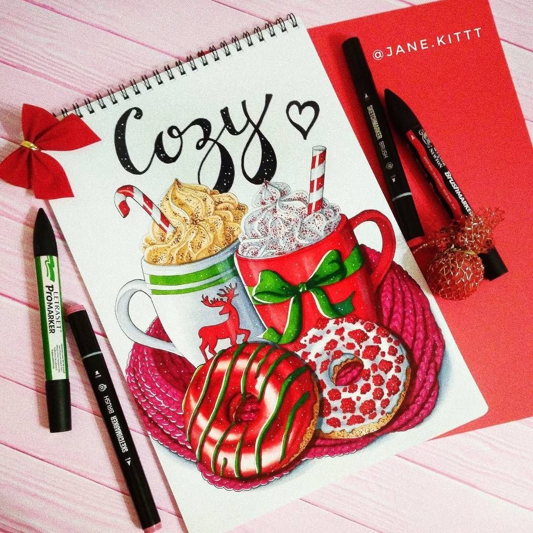 ![Рождественские скетчи маркерами]()