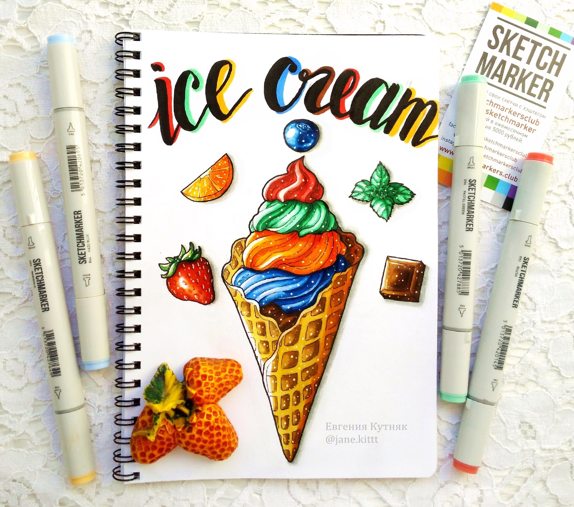 ![Рисунки в скетчбуке маркерами еду]()