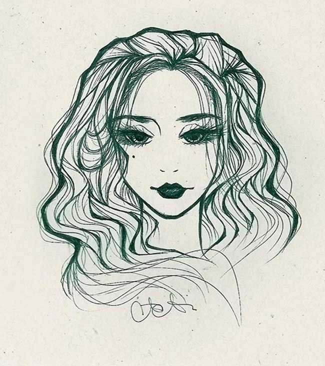 ![Рисунки девочек ручкой]()