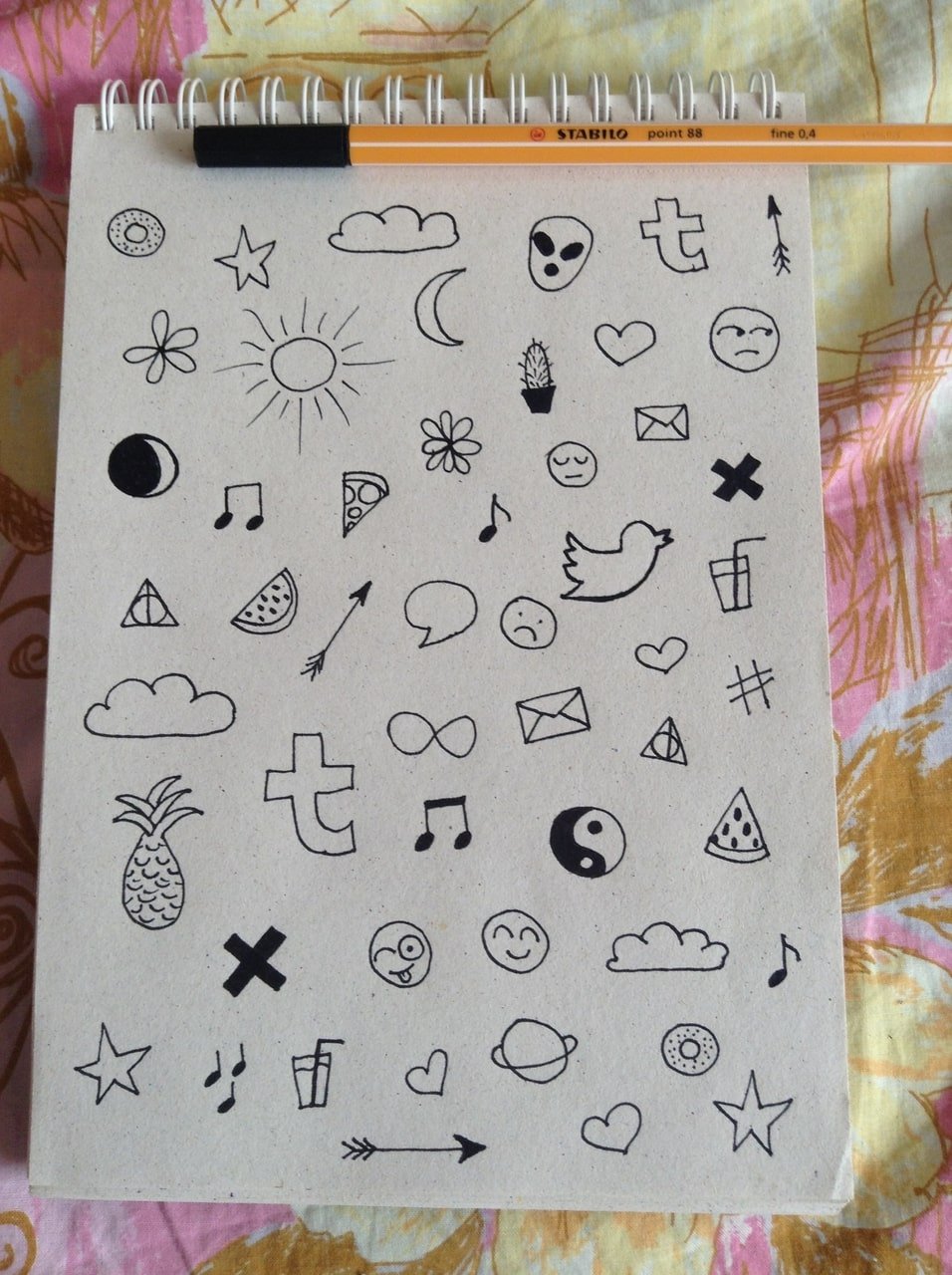 ![Маленькие рисунки ручкой в тетради]()