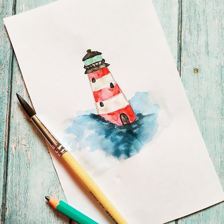 ![Скетч акварель Маяк у моря]()