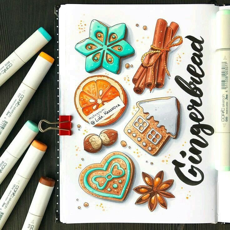 Рисунки маркерами для скетчинга новогодние Лиза Краснова