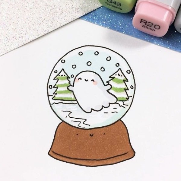 ![Милое приведение рисунок для скетчбука]()
