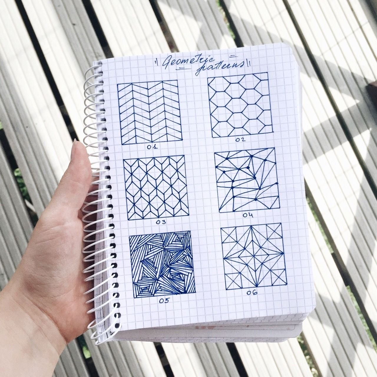 ![Рисунки по клеточкам чёрной ручкой в тетради]()