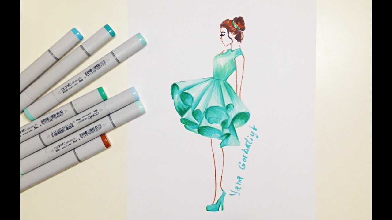Платье рисование с фломастерами