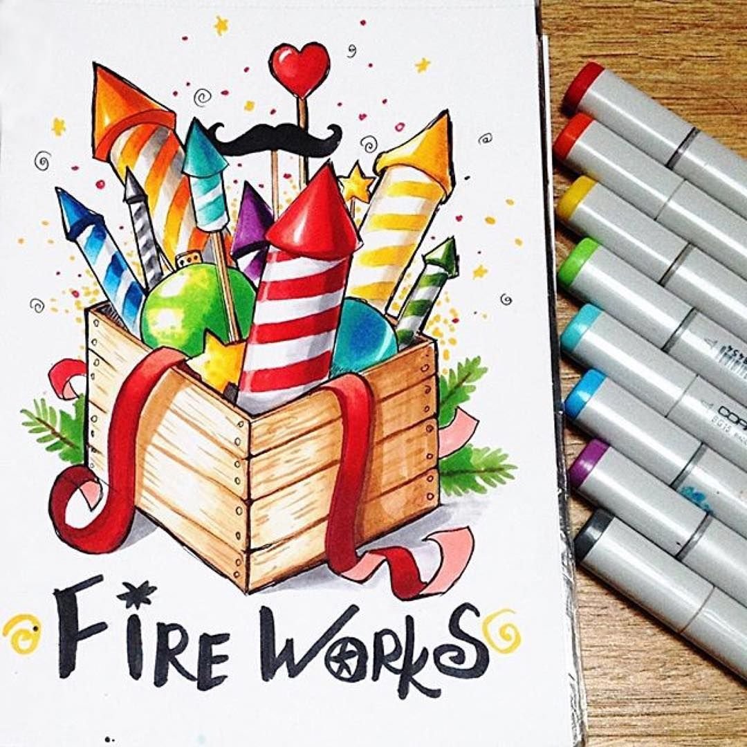 ![Новогодние скетчи маркерами для начинающих легкие]()