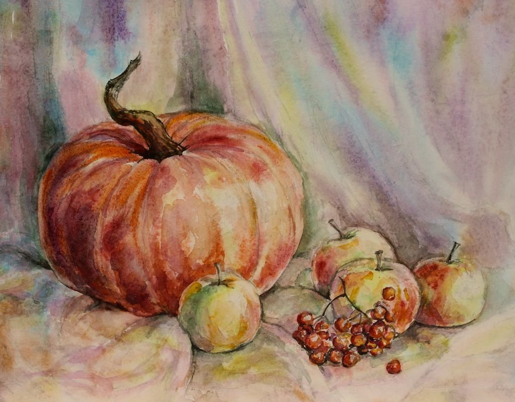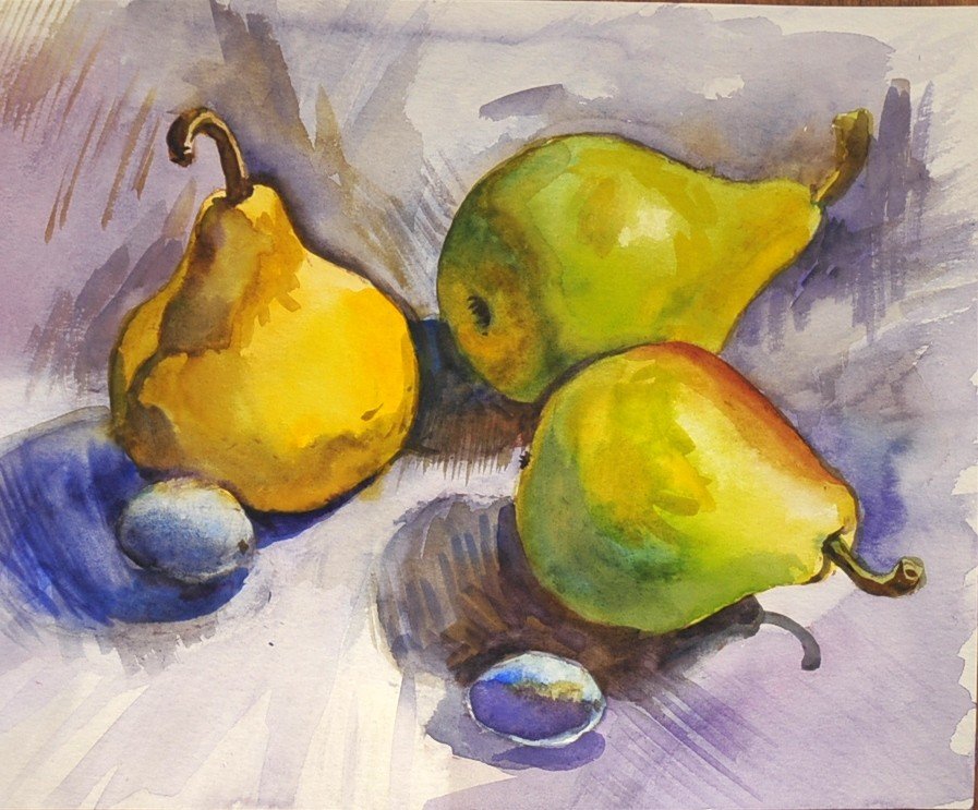 ![Натюрморт с фруктами акварелью]()