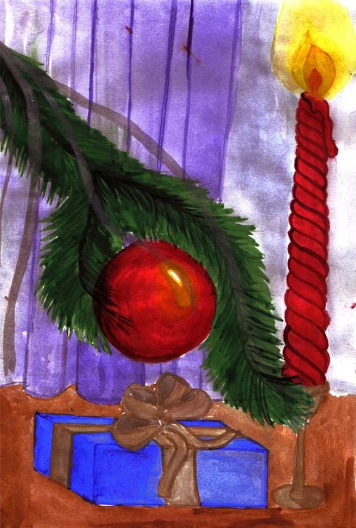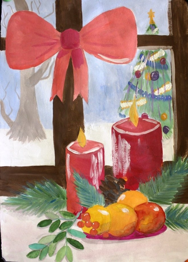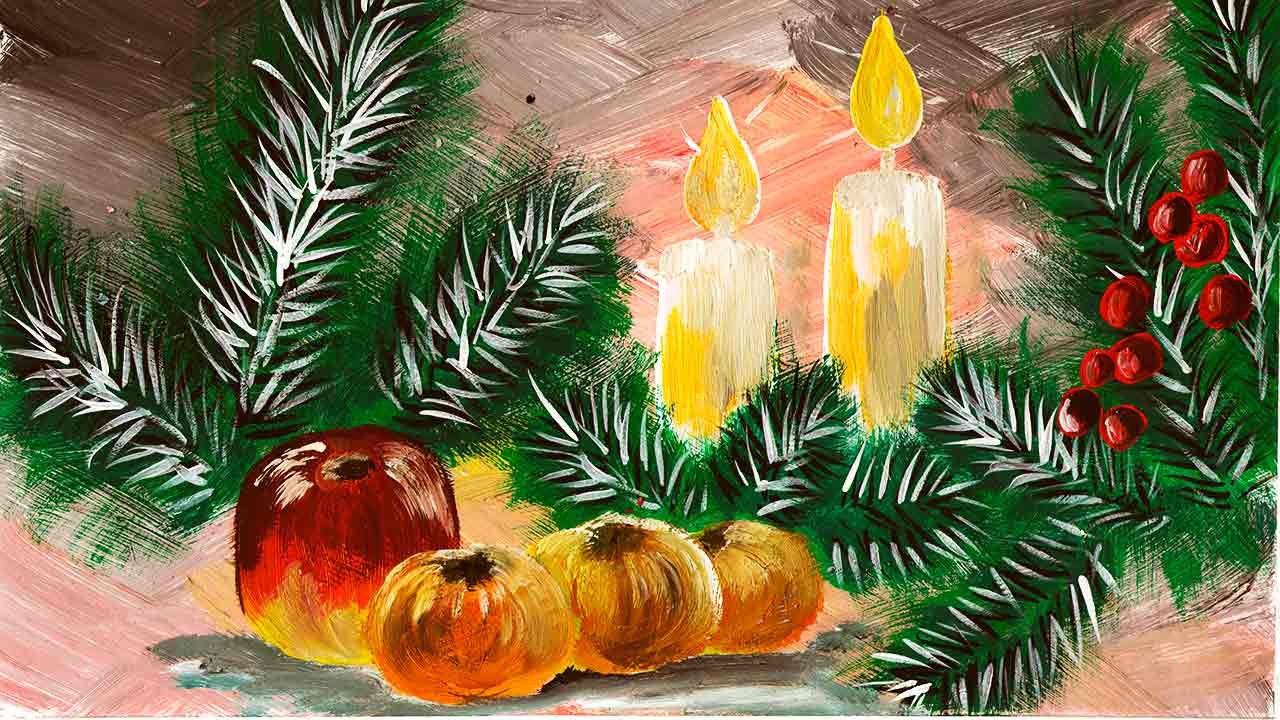 Новогодний натюрморт гуашь рисование