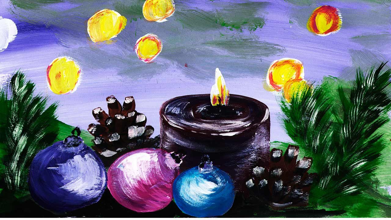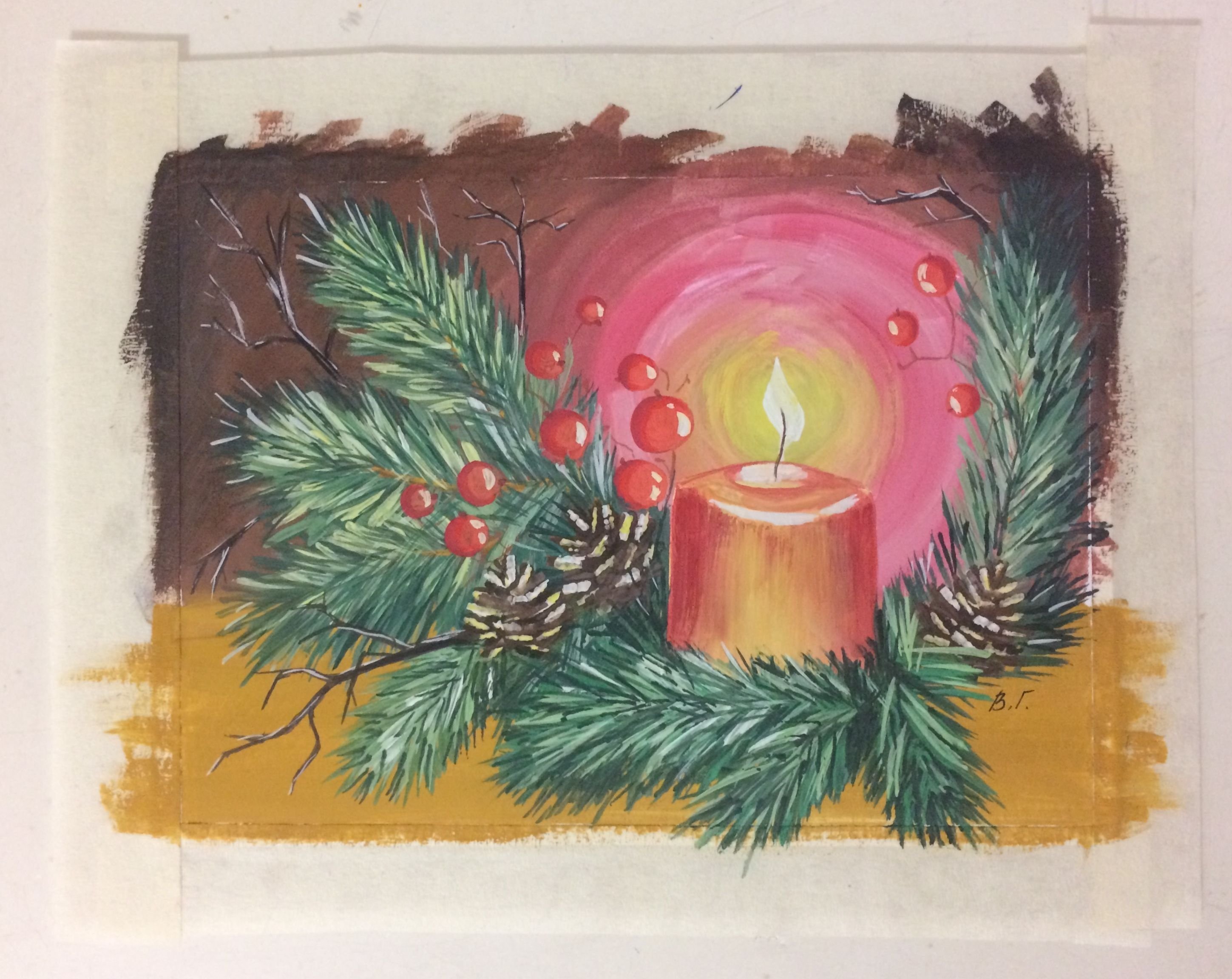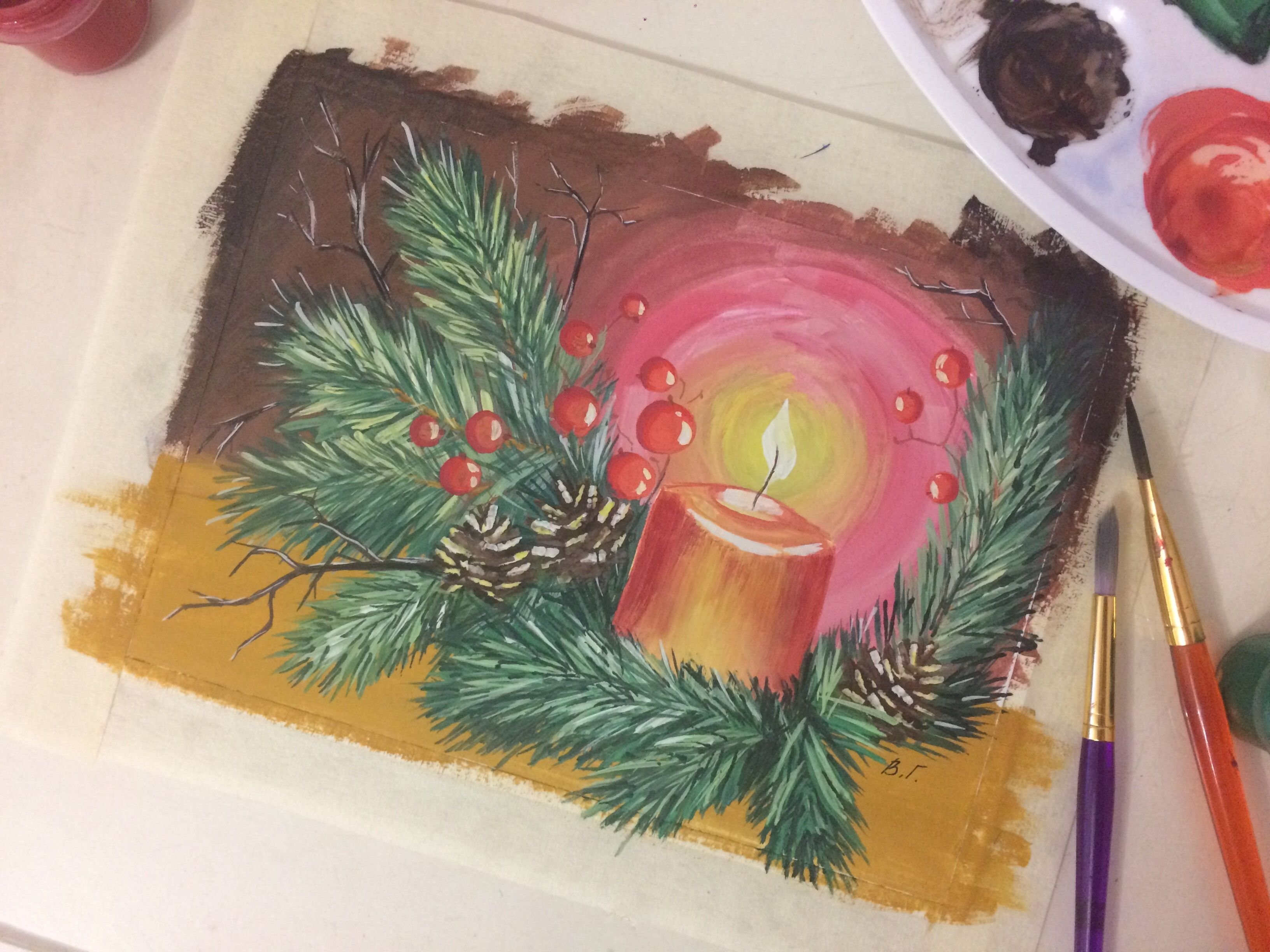 Новогодняя композиция гуашью