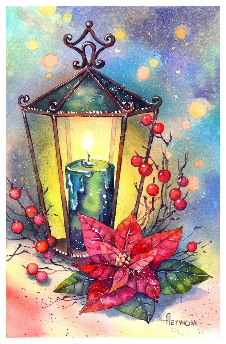 ![Рождественские Акварельные свечи]()