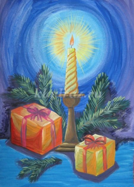 ![Композиция на тему новый год гуашью]()