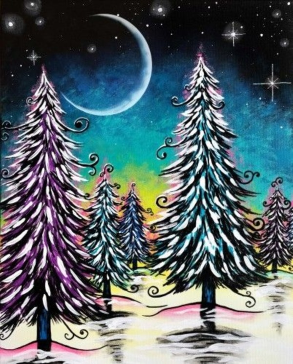 ![Ночной зимний пейзаж гуашью]()