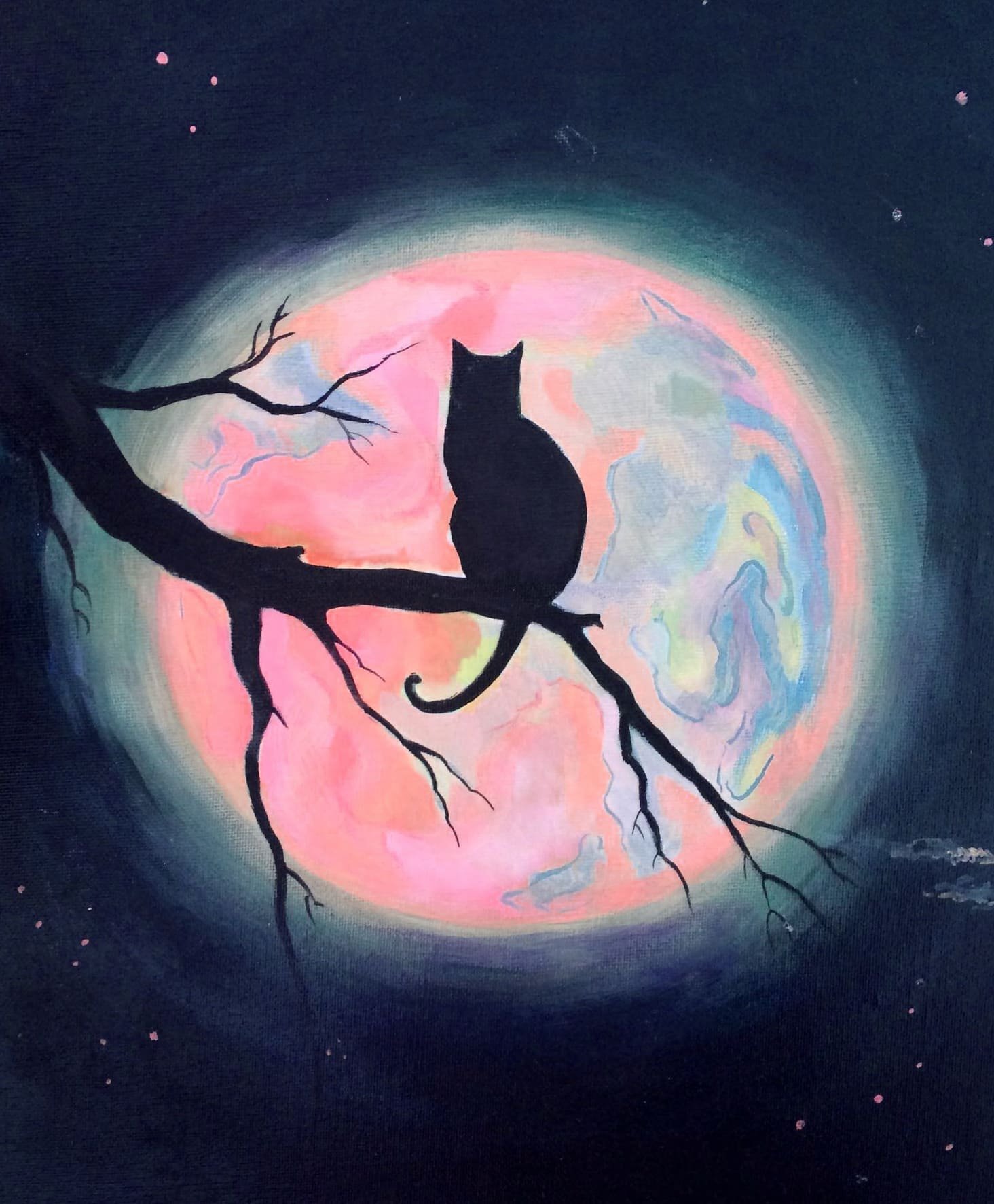 ![Ночной пейзаж гуашью]()